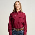 SOMERSET | Womens Half Button Long Sleeve Work Shirt- Royal